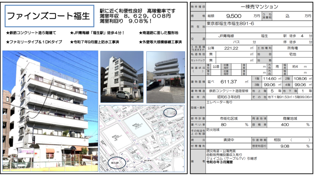 物件のご紹介(東大宮AP 3400万・利回り9%)